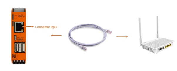 Pertama, sambungkan RevPi ke router menggunakan kabel ethernet. Pastikan router Anda menyediakan IP dinamis/dhcp karena by default ip ethernet pada RevPi automatic.