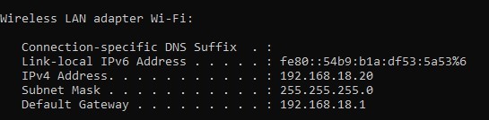 Pastikan laptop anda terhubung dengan router yang sama seperti revpi, baik menggunakan ethernet maupun wireless. Setelah itu, anda perlu mengetahui IP laptop anda, caranya dengan membuka command prompt (cmd). Kemudian, ketik “ipconfig” pada cmd lalu tekan enter.