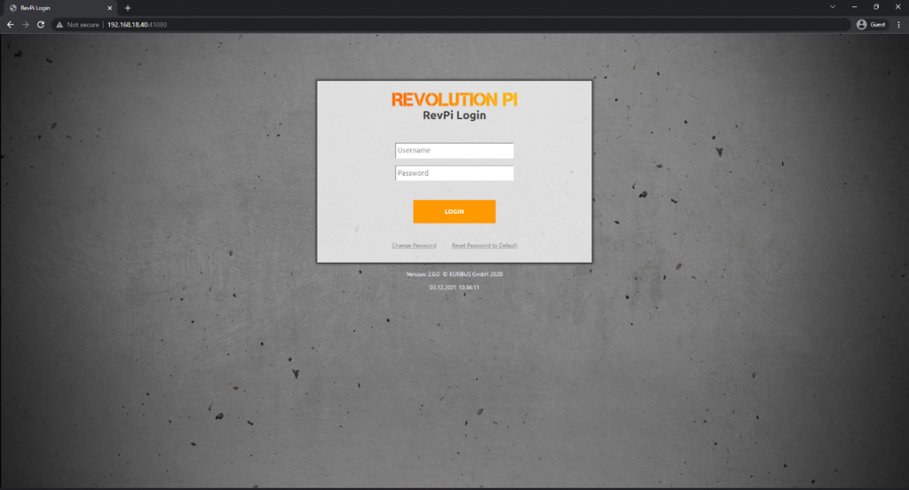 RevPi juga memiliki konfigurasi hardware tersendiri bernama PiCtory. Konfigurasi ini biasa digunakan jika anda ingin menambahkan modul pada RevPi core anda. Untuk melakukan konfigurasi ini, anda dapat membuka browser, lalu ketik IP RevPi pada browser anda. Kemudian akan tampil halaman login seperti di bawah ini. Username dan password yang digunakan pada halaman ini adalah username : admin, lalu passwordnya dapat anda temukan pada bagian samping RevPi core anda.