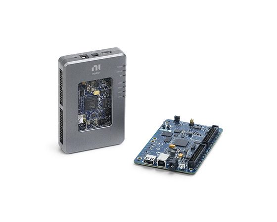 The myRIO Student Embedded Device features I/O on both sides of the device in the form of MXP and MSP connectors. It includes analog inputs, analog outputs, digital I/O lines, LEDs, a push button, an onboard accelerometer, a Xilinx FPGA, and a dual‐core ARM Cortex‐A9 processor. Some models also include WiFi support. You can program the myRIO Student Embedded Device with LabVIEW or C. With its onboard devices, seamless software experience, and library of courseware and tutorials, the myRIO Student Embedded Device provides an affordable tool for students and educators.”